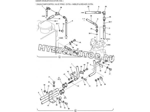 1.054(24) Гидросистема/PUMP/CONTROL VALVE PIPING - EXTRA + NIBBLER & BREAKER, EXTRA New Holland E200SR