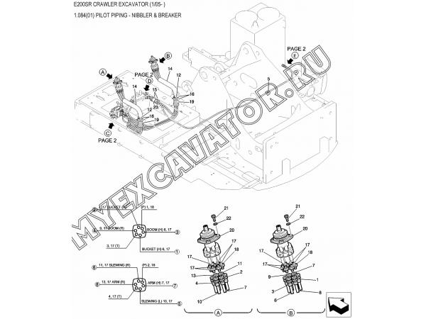 1.084(01) Трубопроводы управления/PILOT PIPING - NIBBLER & BREAKER New Holland E200SR