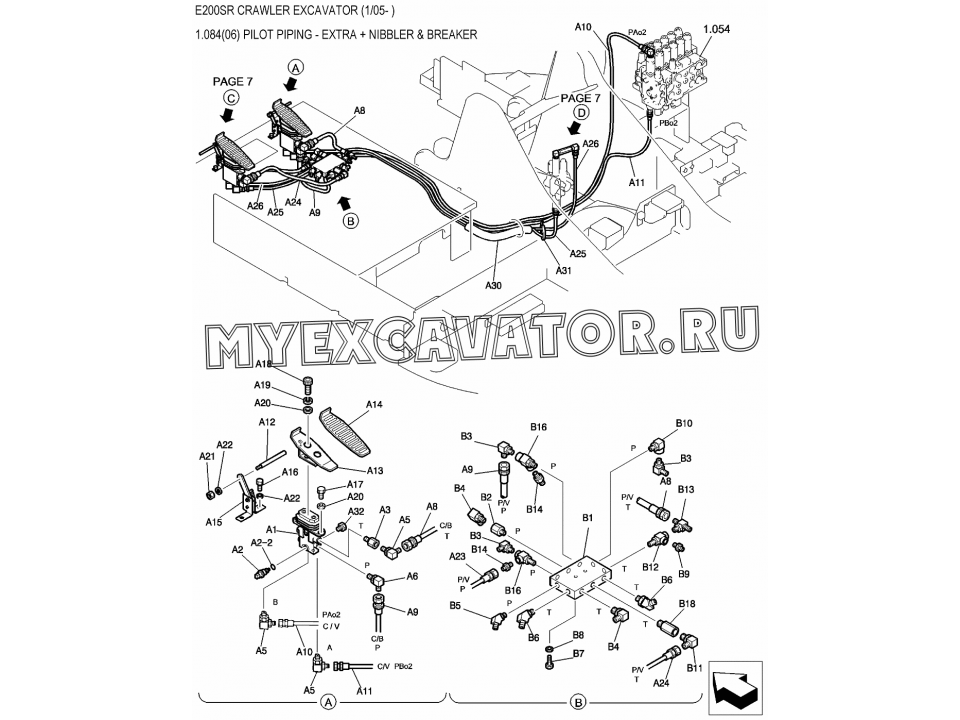 1.084(06) Трубопроводы управления/PILOT PIPING - EXTRA + NIBBLER & BREAKER New Holland E200SR