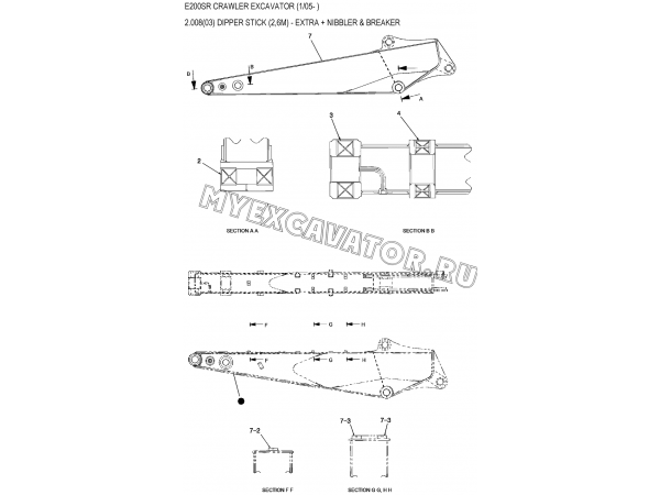 2.008(03) Рукоять/DIPPER STICK (2,6M) - EXTRA + NIBBLER & BREAKER New Holland E200SR