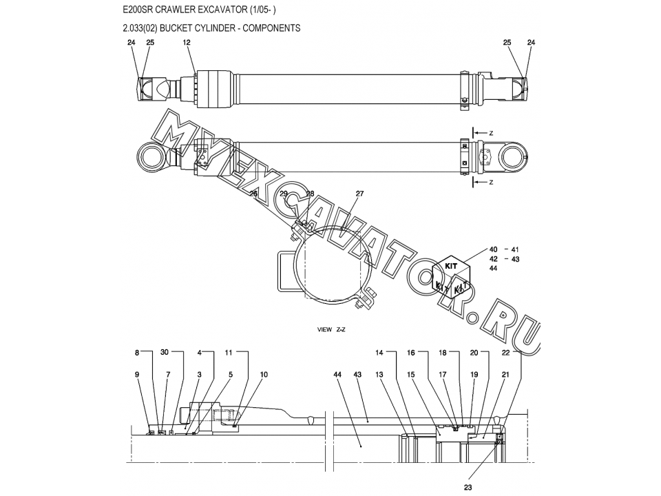2.033(02) Гидроцилиндр/BUCKET CYLINDER - COMPONENTS New Holland E200SR