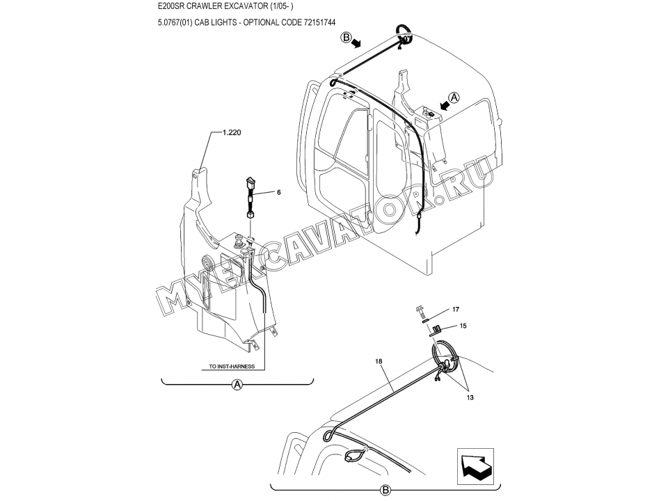 5.0767(01) Освещение/CAB LIGHTS - OPTIONAL CODE 72151744 New Holland E200SR