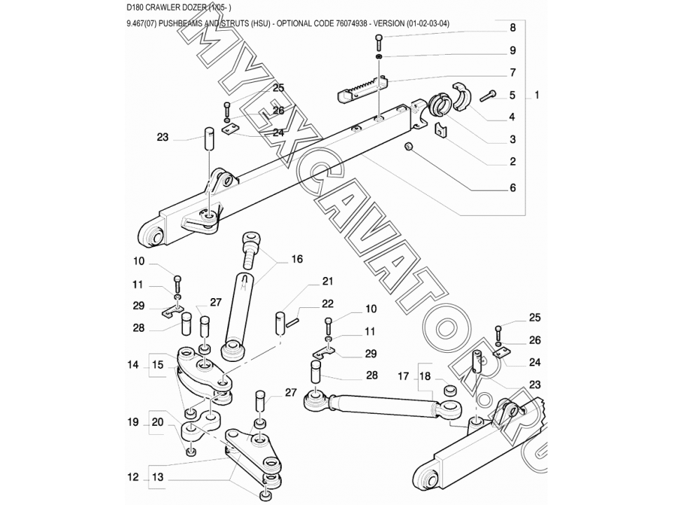 9.467(07) Бульдозерное оборудование/PUSHBEAMS AND STRUTS (HSU) - OPTIONAL CODE 76074938 - VERSION (01-02-03-04) New Holland D180