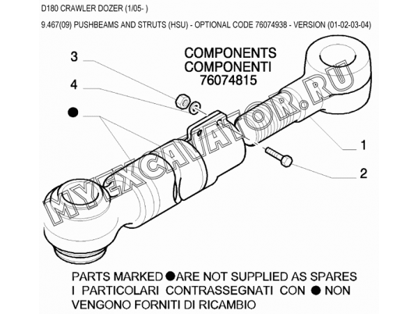 9.467(09) Бульдозерное оборудование/PUSHBEAMS AND STRUTS (HSU) - OPTIONAL CODE 76074938 - VERSION (01-02-03-04) New Holland D180