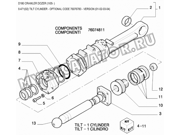9.471(02) Гидросистема рабочего оборудования/TILT CYLINDER - OPTIONAL CODE 76076783 - VERSION (01-02-03-04) New Holland D180