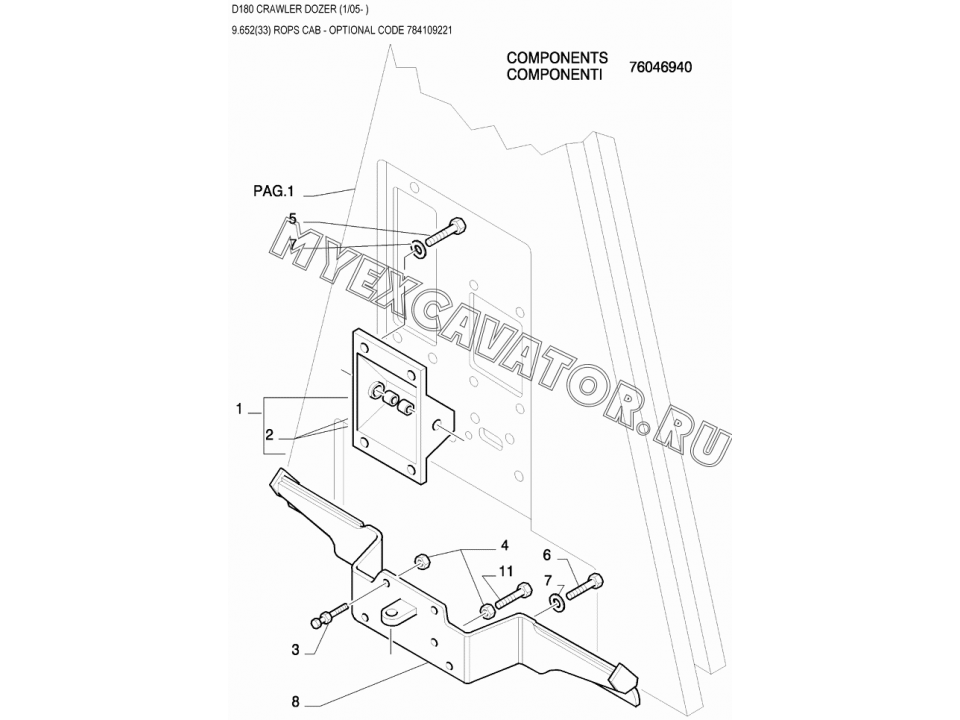 9.652(33) Детали кабины/ROPS CAB - OPTIONAL CODE 784109221 New Holland D180