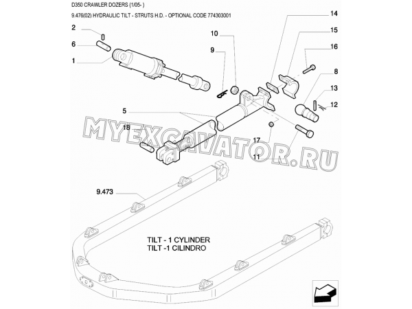 Бульдозерное оборудование/HYDRAULIC TILT - STRUTS H.D. - OPTIONAL CODE 774303001 New Holland D350