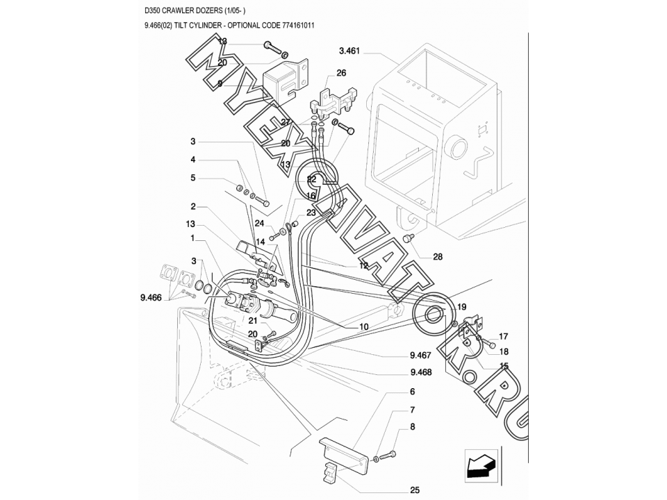 Бульдозерное оборудование/TILT CYLINDER - OPTIONAL CODE 774161011 New Holland D350