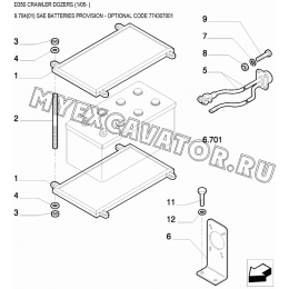 1. 76080875 BATTERY, DRY, 180AH 12V 770A 2. 76074740 SUPPORT 3. 79010787 PLATE 4. 76072333 CAPPING 6. 76074919 CAPPING, 8X1.25X12 7. 76074918 CAPPING, 8.4X17 8. 16043031 BOLT, Hex, M8 x 12, 10.9, Full Thd 9. 14496531 WASHER, M8 x 17 x 1.6 10. 76074738 SUPPORT, - RIGHT 11. 76074737 SUPPORT, - LEFT 12..