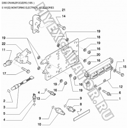 1. 76084934 SWITCH, - AIR FILTER CLOGGING 2. 76076946 SWITCH, 114° 3. 76045559 CONNECTOR, HYD., - TERMOSTAT 4. 76040394 SENDER UNIT, - 0,5 BAR 15 ENGINE OIL 5. 76089134 CONNECTOR, HYD. 6. 79086322 GASKET, 22X50 7. 76045558 CONNECTOR, HYD. 8. 14324901 PLUG..