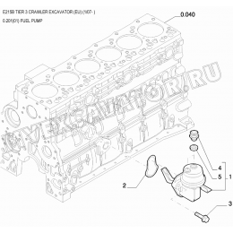 1. 2830266 PUMP, FUEL, ASSY 2. 2830156 GASKET 3. 4899031 SCREW, Hex Flg, M8x1.25x25 4. 4890964 FITTING 5. 4894721 WASHER, SEALING..