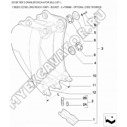 1. 72205960 POINT, BUCKET TOOTH 2. 72205959 PIN, ROLL, ASSY 3. 72206518 BUCKET, ASSY 4. 71408709 SPACER 5. 71408710 SHIM 6. 71408711 SHIM 7. 11113734 BOLT, Hex, M12x75, 10.9 8. 10517074 WASHER, LOCK, 12 10. 72205957 ANGLE BAR - RIGHT 11. 72205958 SHANK, BUCKET TOOTH 12. 72205956 ANGLE BAR - LEFT 201..