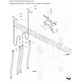 1. 87547555 TUBE, RIGID 2. 87547557 HOSE, FLEXIBLE 3. 87547558 HOSE, FLEXIBLE 4. 72955500 BRACKET 5. 87353360 VALVE, HYDRAULIC 6. 72214523 CONNECTOR, HYD. 7. 72214526 CONNECTOR, HYD. 8. 72214548 CONNECTOR, HYD. 9. 72214663 PLUG 10. 71404313 HALF-FLANGE 11. 11106234 BOLT, Hex, M10x25, 10.9, Full Thd ..