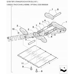 72210200 CHAIN, ASSY 1. 72210186 TRACK LINK - RIGHT 2. 72210187 TRACK LINK - LEFT 3. 72210188 PIN 4. 72210189 BUSHING 5. 72210190 BUSHING 6. 71461019 RING 7. 72210191 SPACER 8. 72210192 PIN 9. 72210193 SCREW 10. 76030024 NUT 11. 72210194 TRACK SHOE, 500 MM 12. 87352425 TRACK ASSY, WITH 500 MM SHOES,..