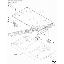1. 11113534 BOLT, Hex, M12x65, 10.9, Full Thd 2. 72201225 WASHER 3. 11112434 BOLT, Hex, M12x30, 10.9, Full Thd 4. 87578749 ASSY 5. 87578750 ROOF, ASSY 6. 87538372 PILLAR 7. 72171602 SCREW 8. 12626231 WASHER..