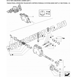 1. 87542780 SECTOR 2. 85819148 KIT, SEALS, Seals 3. 85819378 KIT, SEALS, Valve 4. 85811938 VALVE, CHECK, Valve 5. 85820130 BOOT 6. 85824279 KIT, Seal 7. 85824278 KIT, Working Assy 8. 85824281 KIT, SEALS, Seals 9. 85819040 KIT, SEALS, Compensator Seal 10. 85824283 KIT, SEALS, Spool Seal..