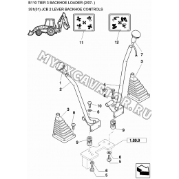 1. 85804780 LEVER 2. 85803382 BOOT 3. 13272477 SCREW, Cross Pan Hd, M4x20, 12.9 4. 85802647 SUPPORT 5. 15540421 BOLT, Hex, M12x1.25x30, 8.8, Full Thd 6. 83962918 HANDLE, LH 7. 85804782 PIN 8. 85803540 PLATE 9. 16101511 NUT, M12x1.25, Cl 8 10. 11190779 WASHER, SPRING, Belleville, M13 11. 85804801 BEL..