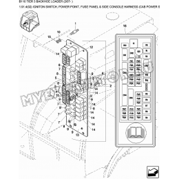 1. 85802250 DECAL 2. 87552487 ELECTRONIC UNIT, CONTROL 3. 85806134 FUSE, 5A 4. 10519204 WASHER, M4x9x.8 5. 11054590 FUSE, 3A 6. 85806135 ISOLATOR 7. 11054890 FUSE, 7,5A 8. 11054990 FUSE, 10 Amp 9. 11055090 FUSE, 15A 10. 85825198 RELAY 11. 12574011 NUT, LOCK, M4x.7, Cl 8 12. 85803986 RELAY, Flasher 1..