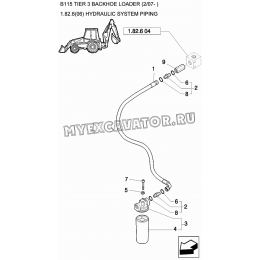 1. 85805840 HOSE, FLEXIBLE 2. 85802801 CONNECTOR, HYD., 1-11/16"-12 ORSx1-5/16"-12 SAE O-ring 3. 87315438 FILTER ASSY 4. 86989733 FILTER, HYDRAULIC OIL 5. 11190579 WASHER, SPRING, Belleville, M10.5 6. 80167268 O-RING 7. 11106221 BOLT, Hex, M10x25, 8.8, Full Thd 8. 89824051 O-RING 9. 858058..