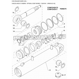 1. 76066252 ROD 2. 76066253 RING, LOCKING 3. 76066254 ARTICULATION 4. 76066255 PLATE, BASE 5. 76066256 CIRCLIP 6. 76066257 O-RING 7. 76066258 WASHER, THRUST 8. 76066259 O-RING 9. 76066260 LINER, ENGINE CYLINDER 10. 76066261 PISTON 11. 76066264 NUT 12. 76066269 KIT, SEALS, - HYDRAULIK TILT CYL. SEALS..