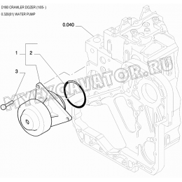 1. 76195258 PUMP, WATER, - ASSY 2. 76195231 O-RING 3. 76194676 SCREW..