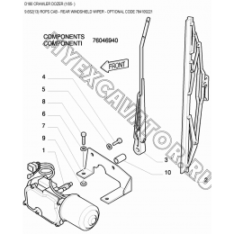 1. 76067672 WIPER MOTOR, 24V 2. 76067148 WIPER ARM 3. 76067149 WIPER BLADE 4. 76067150 LEVER & PIN ASSY, - ASSY 5. 76067151 PIN 6. 76067146 SPACER 7. 10902221 BOLT, Hex, M6x16, 8.8 8. 14496431 WASHER, 6,4X12,5 9. 79095755 BRACKET, - RIGHT 10. 79101655 BRACKET, - LEFT 11. 16043234 BOLT, Hex, M8x1..