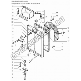 76092327 WATER RADIATOR TESIO-CHAUSSON SEE 2. 76033295 PANEL, SIDE, LEFT 3. 76033294 PANEL, SIDE, RIGHT 4. 76093535 PAN, UPPER 5. 76093534 PAN, LOWER 6. 16043821 BOLT, Hex, M8x30, 8.8 7. 76079923 WASHER, 8X21 8. 76072310 NUT, 8X1,25 9. 16043621 BOLT, Hex, M8x25, 8.8 10. 76079919 WASHER, 8X16X1,9 11...