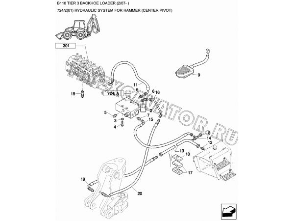 Гидросистема/HYDRAULIC SYSTEM FOR HAMMER (CENTER PIVOT) New Holland B110