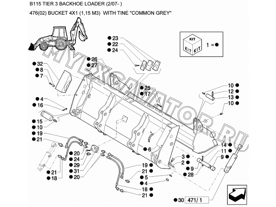 Ковш/BUCKET 4X1 (1,15 M3) WITH TINE "COMMON GREY" New Holland B115
