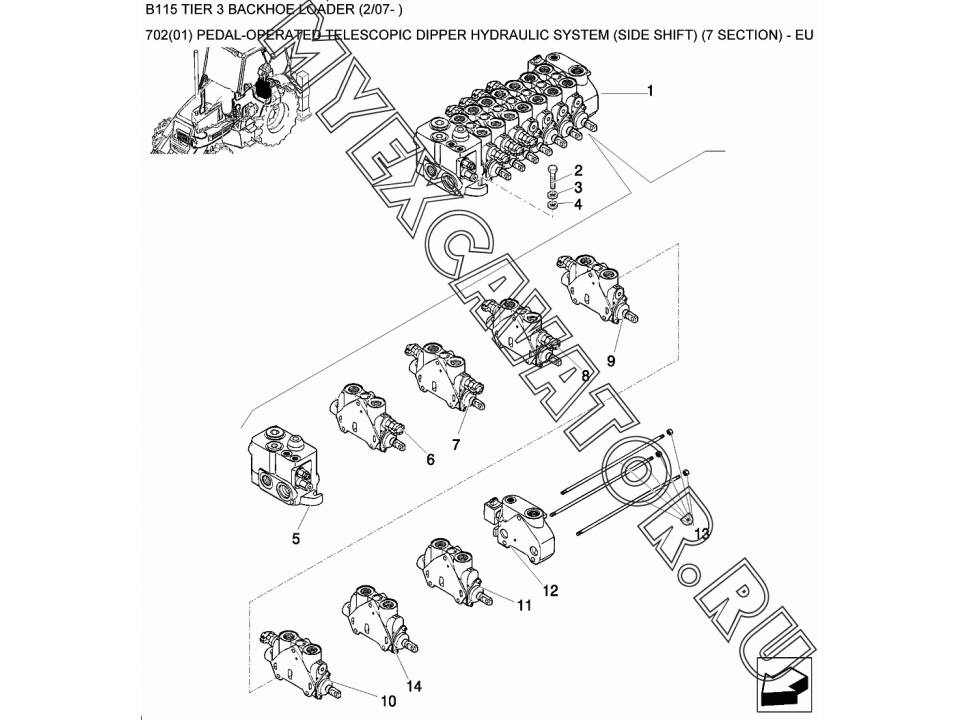 Гидросистема/PEDAL-OPERATED TELESCOPIC DIPPER HYDRAULIC SYSTEM (SIDE SHIFT) (7 SECTION) - EU New Holland B115