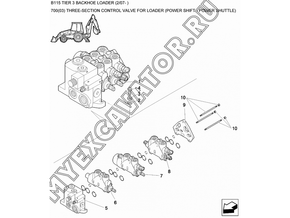 Гидросистема/THREE-SECTION CONTROL VALVE FOR LOADER (POWER SHIFT - POWER SHUTTLE) New Holland B115