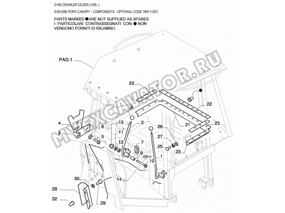 Детали кабины/ROPS CANOPY - COMPONENTS - OPTIONAL CODE 784111201 New Holland D150