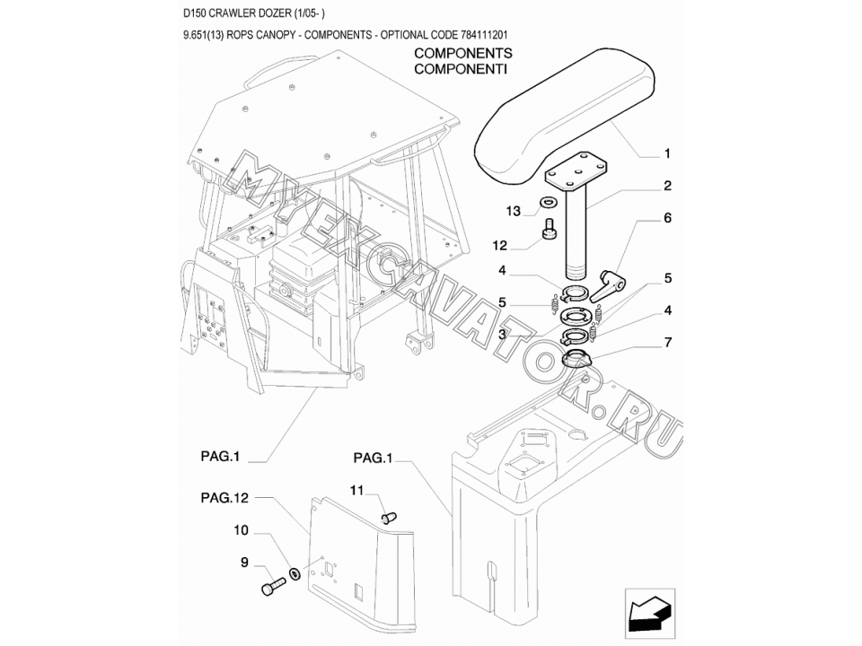 Детали кабины/ROPS CANOPY - COMPONENTS - OPTIONAL CODE 784111201 New Holland D150