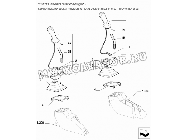 Гидросистема/ROTATION BUCKET PROVISION - OPTIONAL CODE 461241008 (01-02-03) - 461241018 (04-05-06) New Holland E215