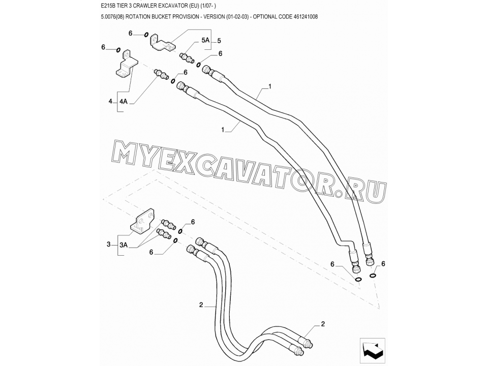 Гидросистема/ROTATION BUCKET PROVISION - VERSION (01-02-03) - OPTIONAL CODE 461241008 New Holland E215