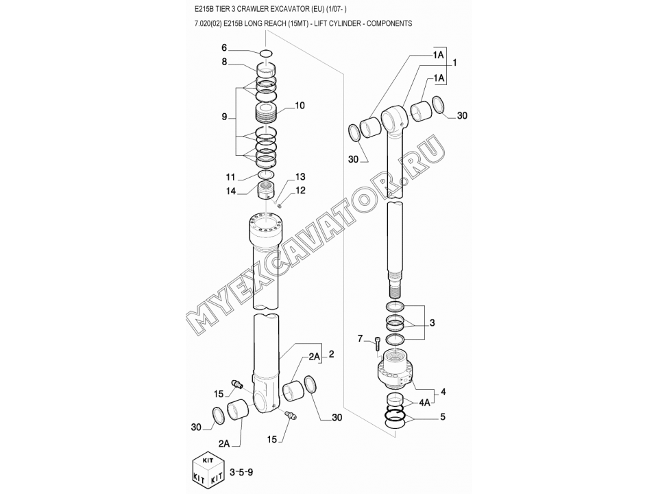 Гидроцилиндр/E215B LONG REACH (15MT) - LIFT CYLINDER - COMPONENTS New Holland E215