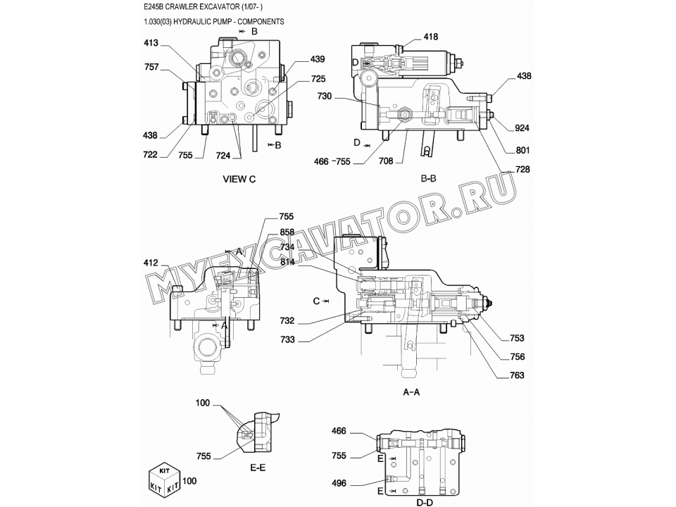 100 72962151 KIT, REPAIR 412 14306970 SCREW 413 14309070 SCREW 418 72209810 SCREW 438 14305334 SCREW, Hex Soc Hd, M6x20, 10.9 439 14305470 SCREW 466 72209813 PLUG 496 72209815 PLUG 708 72215396 GASKET 722 72217377 GASKET 724 72215395 GASKET 725 72217378 GASKET 728 72215463 GASKET 730 72215357 GASKET 732 72217476 GASKET 733 72217379 GASKET 734 72217380 GASKET 753 72217381 GASKET 755 72215387 GASKET 756 72217382 GASKET 757 72215386 GASKET 763 72215461 GASKET 801 16102324 NUT, Thin, M8x1.25, Cl 05 814 72219119 GASKET 858 11066371 - 924 72209832 KIT