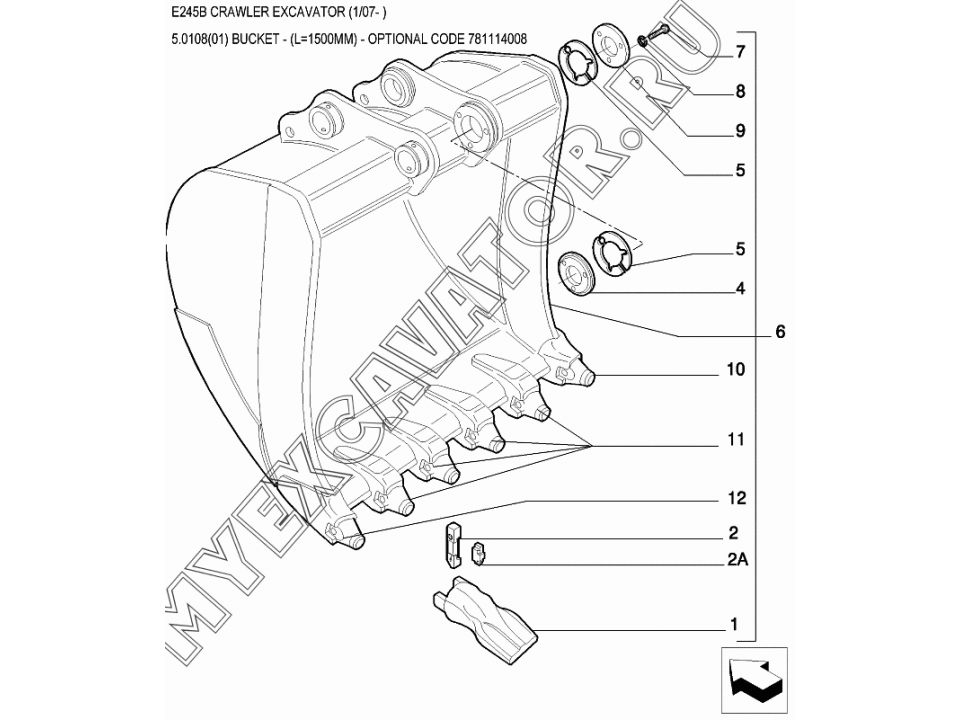 Ковш/BUCKET - (L=1500MM) - OPTIONAL CODE 781114008 New Holland E245B