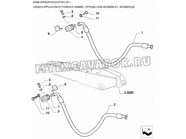 Гидросистема/APPLICATION OF HYDRAULIC HAMMER - OPTIONAL CODE 461226008 (01) - 461226018 (02) New Holland E245B