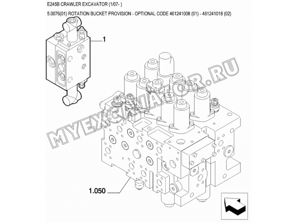 Гидросистема/ROTATION BUCKET PROVISION - OPTIONAL CODE 461241008 (01) - 461241018 (02) New Holland E245B