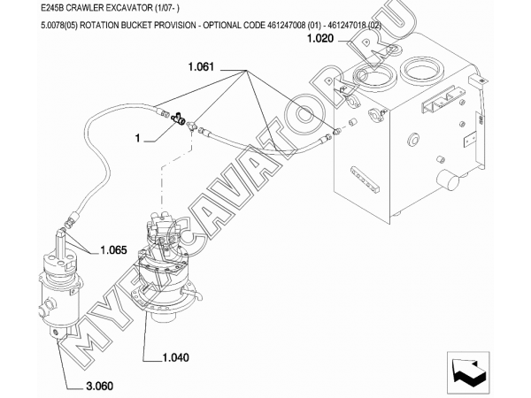 Гидросистема/ROTATION BUCKET PROVISION - OPTIONAL CODE 461247008 (01) - 461247018 (02) New Holland E245B