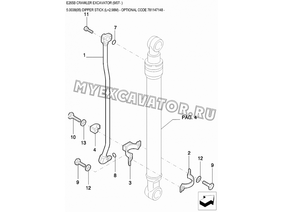 Рукоять/DIPPER STICK (L=2.98M) - OPTIONAL CODE 781147148 New Holland E265B