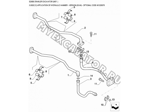 Гидросистема/APPLICATION OF HYDRAULIC HAMMER - VERSION (03-04) - OPTIONAL CODE 461226078 New Holland E265B