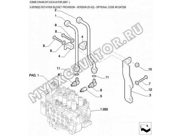 Гидросистема/ROTATION BUCKET PROVISION - VERSION (01-02) - OPTIONAL CODE 461247028 New Holland E265B