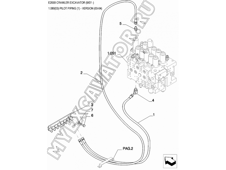 Трубопроводы управления/PILOT PIPING (1) - VERSION (03-04) New Holland E265B