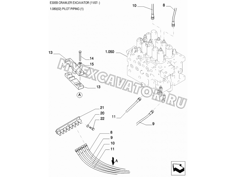 Трубопроводы управления/PILOT PIPING (1) New Holland E305B