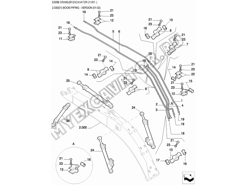 Трубопроводы стрелы/BOOM PIPING - VERSION (01-02) New Holland E305B