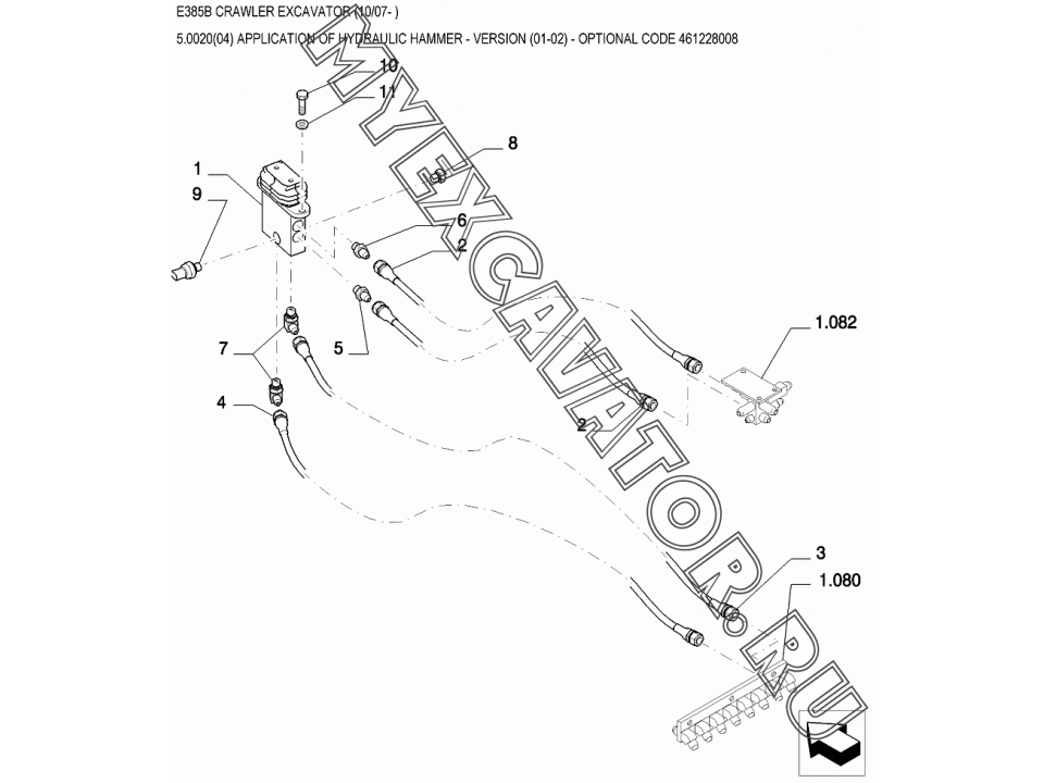 Гидросистема/APPLICATION OF HYDRAULIC HAMMER - VERSION (01-02) - OPTIONAL CODE 461228008 New Holland E385B