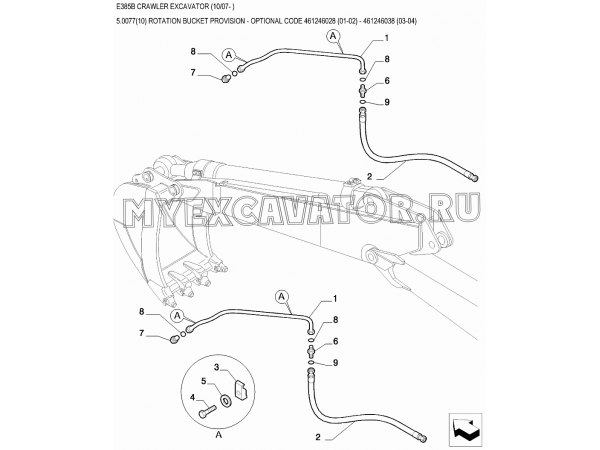 Гидросистема/ROTATION BUCKET PROVISION - OPTIONAL CODE 461246028 (01-02) - 461246038 (03-04) New Holland E385B