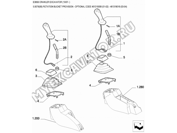 Гидросистема/ROTATION BUCKET PROVISION - OPTIONAL CODE 461319008 (01-02) - 461319018 (03-04) New Holland E385B